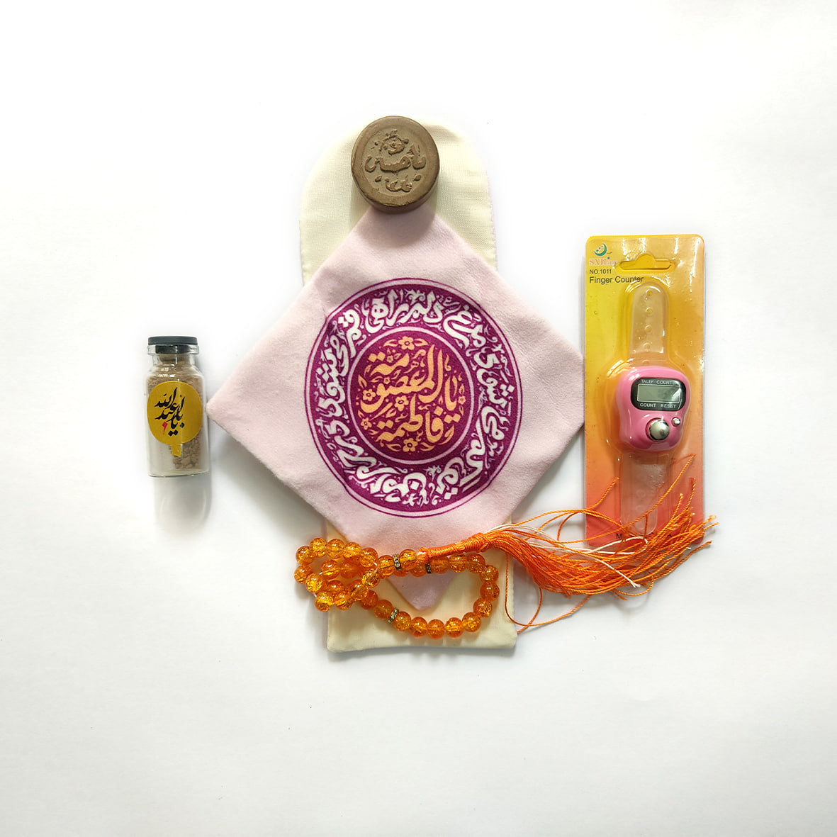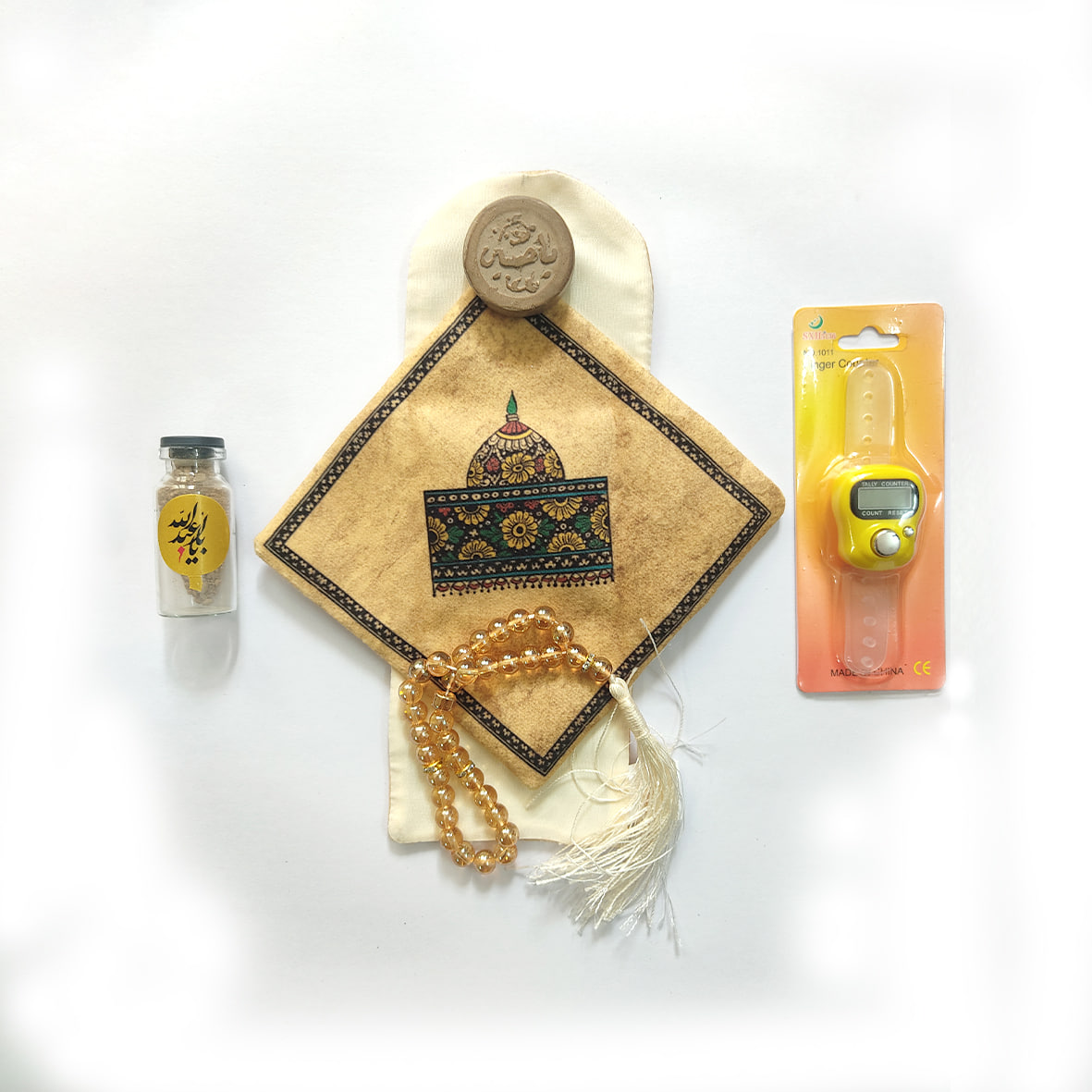با تهیه بسته محصولات عبادی، تجربهای آرامشبخش و معنوی را به خانهتان بیاورید. این بسته شامل جانماز کیفی، صلواتشمار، تسبیح، مهر و تربت حضرت امام حسین علیهالسلام میباشد.